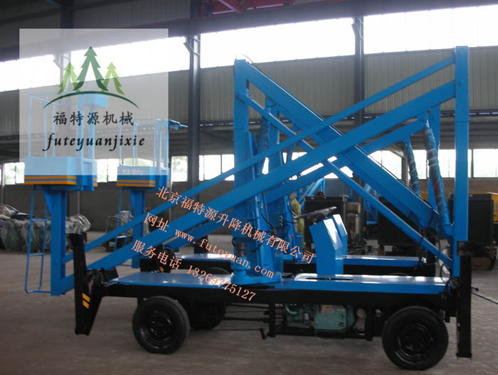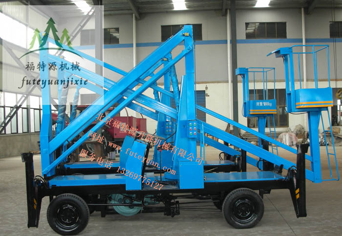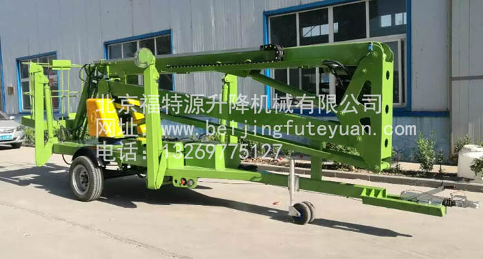 折臂式升降機具有移動方便、操作簡單、作業面大、平衡性能好等特點,在路面不平的情況下,即能四腿同時支撐,也可單腿支撐,便于操作使用,因而廣泛用于車站、碼頭、公共建筑等需從事高空作業的行業和領域。