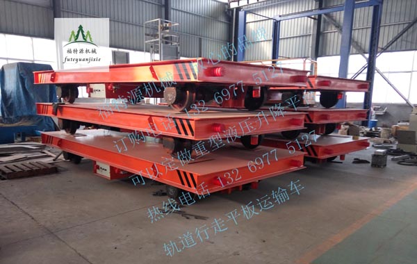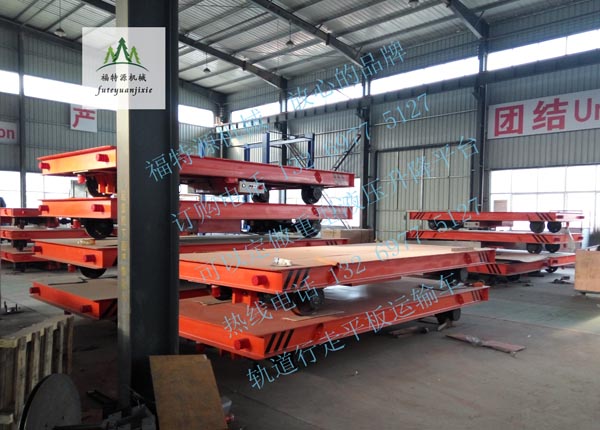1、平板車是一種電動(dòng)有軌廠內(nèi)運(yùn)輸車輛。又稱電動(dòng)平車、臺(tái)車、過(guò)跨車。它具有結(jié)構(gòu)簡(jiǎn)單、使用方便、容易維護(hù)、承載能力大、污染少等優(yōu)點(diǎn)。廣泛用于機(jī)器制造和冶金工廠,作為車間內(nèi)部配合吊車運(yùn)輸重物過(guò)跨之用。KP 系列電動(dòng)平車高度低,臺(tái)面加強(qiáng),改型容易,維修方便。此系列平車可改裝為電瓶直流供電方式供電,改為直流供電后不僅增加了安全,而且不怕?tīng)C,不怕砸,不妨礙交叉運(yùn)輸,容易實(shí)現(xiàn)遙控和自動(dòng)化,可以在彎道,環(huán)行道上行駛,適應(yīng)增加降壓變壓器數(shù)量可不受平車運(yùn)行距離的限制,給廠區(qū)運(yùn)輸平面布置以很大方便,大大的增加了作業(yè)范圍。平板車是一種電動(dòng)有軌廠內(nèi)運(yùn)輸車輛。又稱電動(dòng)平車、臺(tái)車、過(guò)跨車。它具有結(jié)構(gòu)簡(jiǎn)單、使用方便、容易維護(hù)、承載能力大、污染少等優(yōu)點(diǎn)。廣泛用于機(jī)器制造和冶金工廠,作為車間內(nèi)部配合吊車運(yùn)輸重物過(guò)跨之用。KP 系列電動(dòng)平車高度低,臺(tái)面加強(qiáng),改型容易,維修方便。