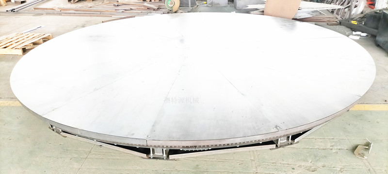 摩擦輪驅(qū)動(dòng)是旋轉(zhuǎn)臺(tái)常用的方式之一,通過(guò)旋轉(zhuǎn)驅(qū)動(dòng)器的工作帶動(dòng)摩擦輪工作,摩擦輪的工作帶動(dòng)臺(tái)面的旋轉(zhuǎn),該方式噪音小。旋轉(zhuǎn)的中心,無(wú)論是圓盤(pán)類型還是圓柱類型,都不能負(fù)荷重量。重量一般分布在四周的輪子上,輪子安放于旋轉(zhuǎn)結(jié)構(gòu)或支撐在地面的滑道上。