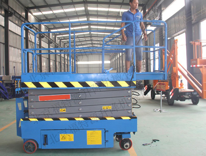 全電動(dòng)行走式升降機(jī),具有移動(dòng)靈活、升降平穩(wěn)、操作方便、載重量大等特點(diǎn)。升降動(dòng)力分為220V或380V電源,采用國(guó)外和國(guó)產(chǎn)液壓泵站。主要適用于工廠、物業(yè)單位、商店裝潢、建筑、裝飾、場(chǎng)館館布置、會(huì)議中心等行業(yè)。此款升降機(jī)考慮到移動(dòng)方便性、較高的穩(wěn)定性,寬大的作業(yè)平臺(tái)和較高的承載能力,使高空作業(yè)范圍更大更廣、可以多人同時(shí)作業(yè)。提高了工作效率保障了人身安全,的確是高空作業(yè)得力助手。